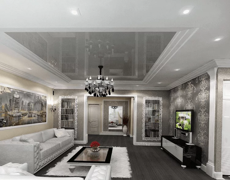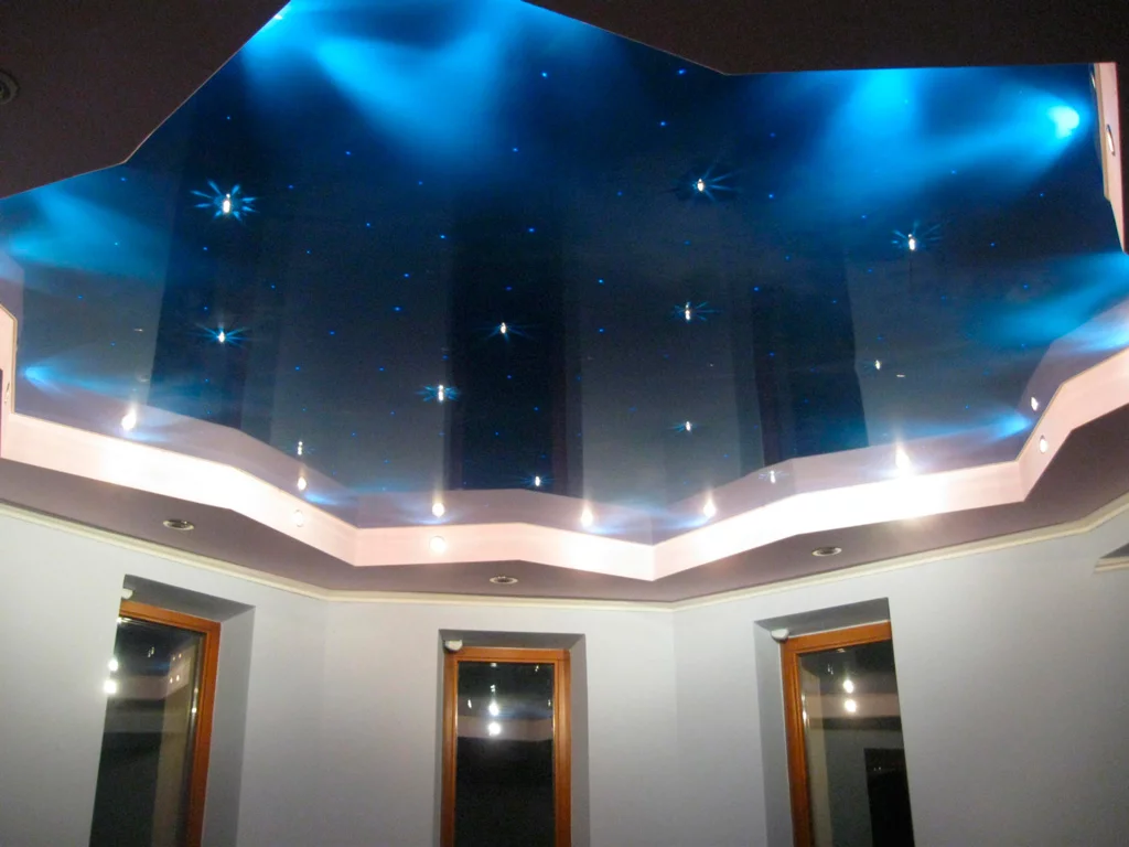 Tavanele extensibile lucioase sunt capabile să modifice vizual spațiul, mărind volumul încăperii și cel al înpălțimii tavanului, datorită capacității sale de a crea o suprafață reflexivă cu efect de oglindă, suplimentar completând spațiul cu lumină.